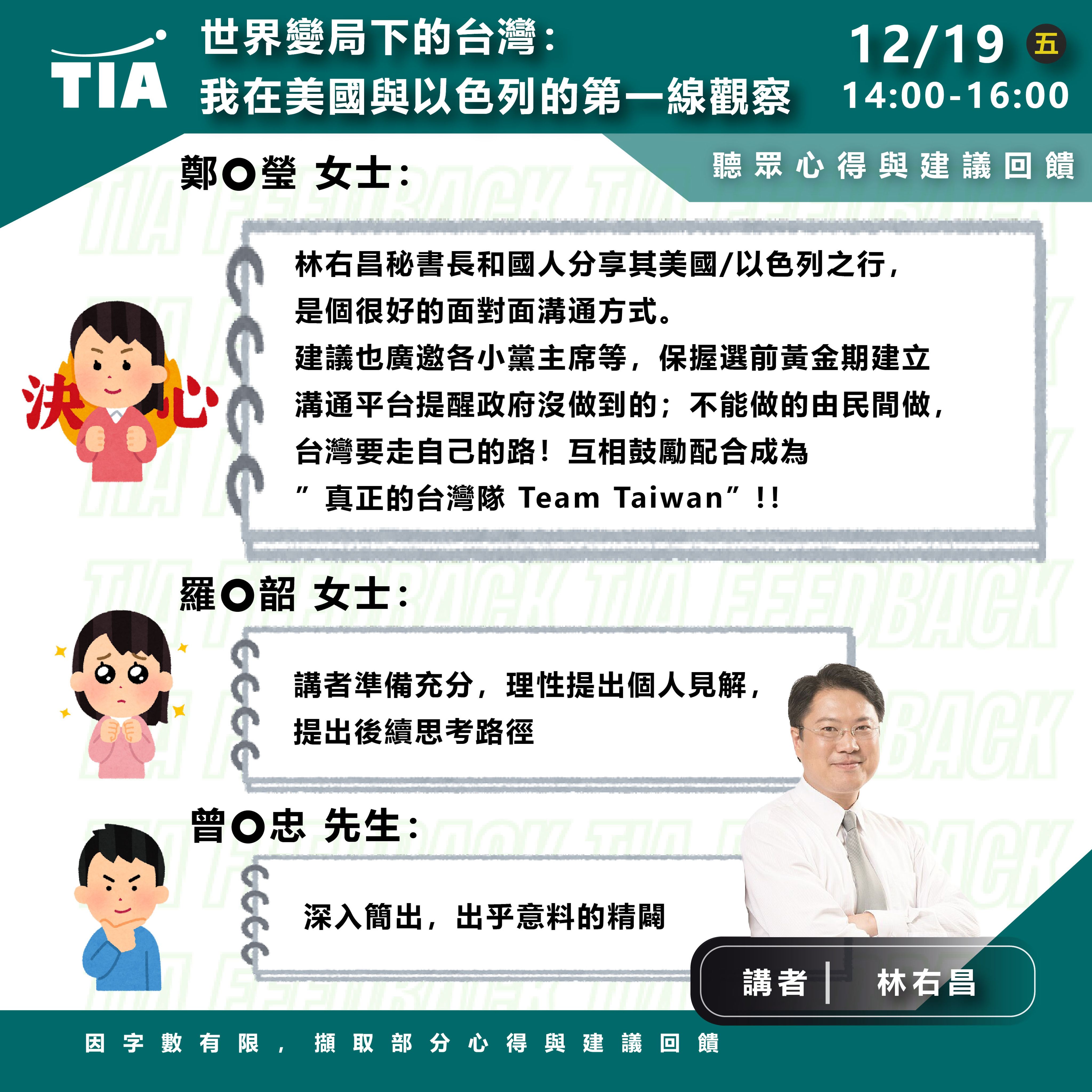 《12/19 TIA講座聽眾心得與回饋》