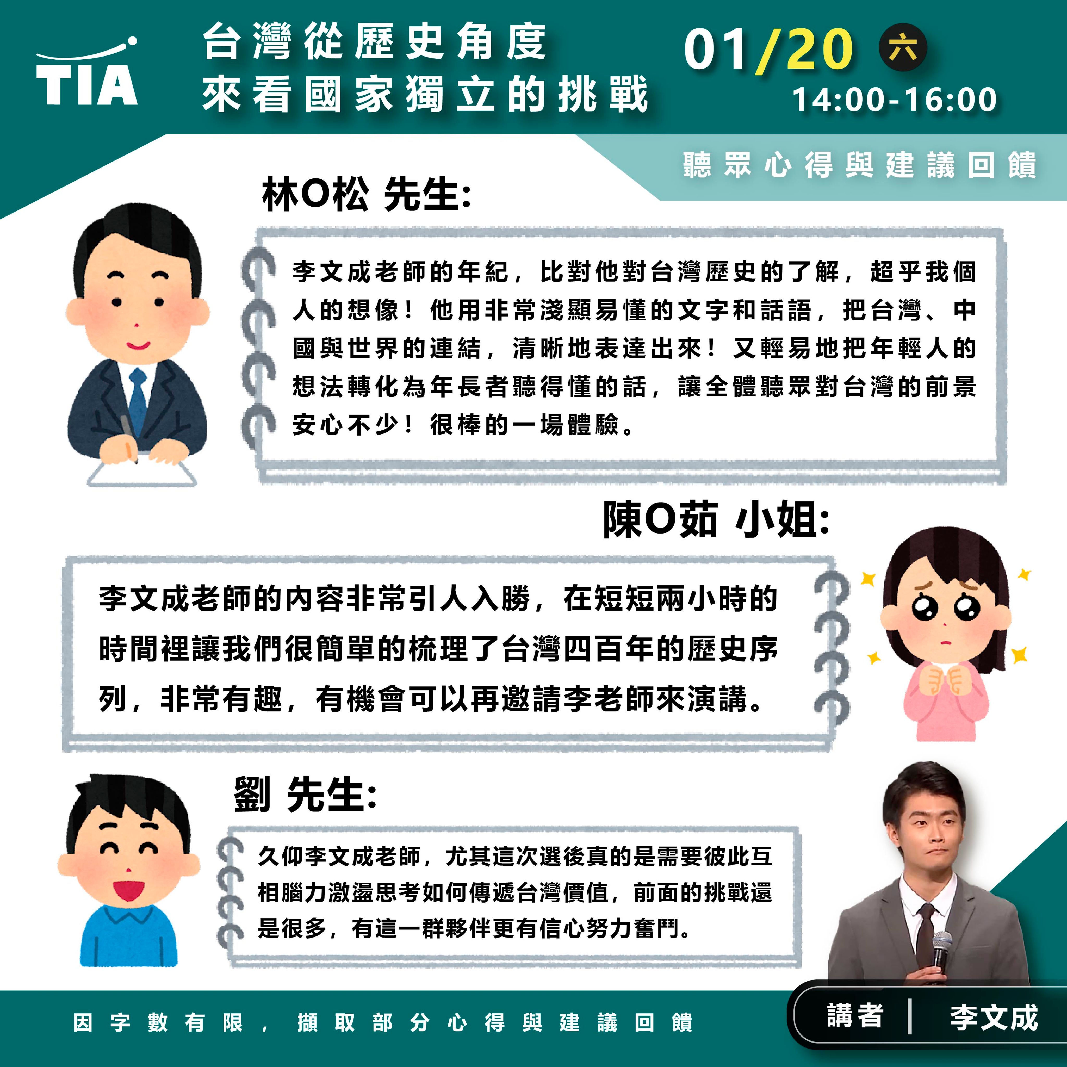 《01/20 TIA講座聽眾心得與回饋》